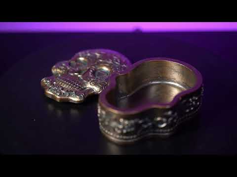 • Metal look trinket box with candy skull design