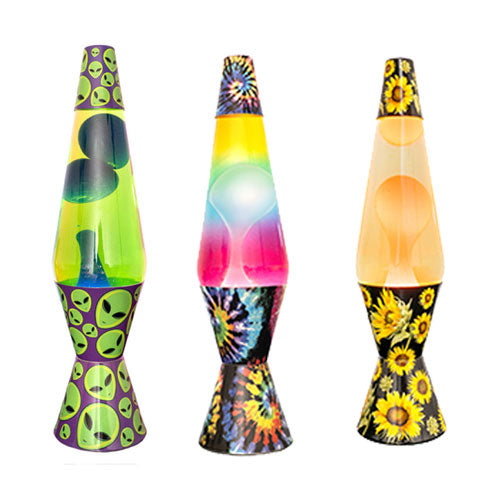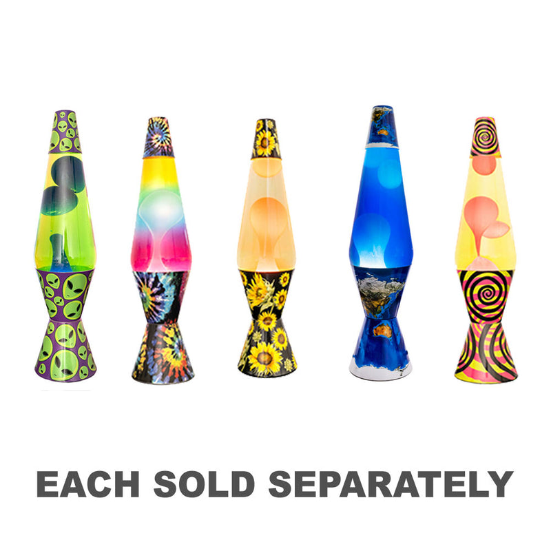 • Features a rainbow gradient glass body filled with lava that swirls and ripples when lit