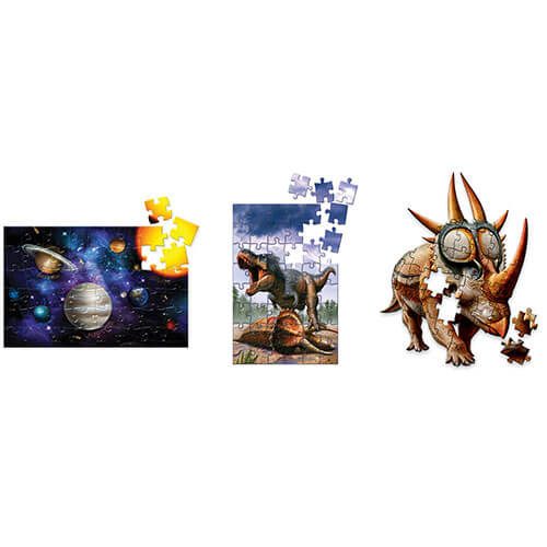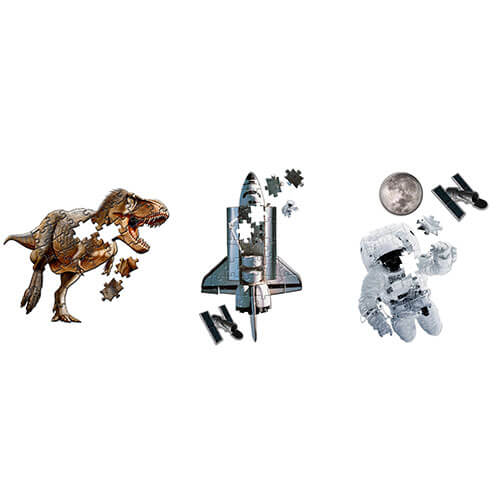 Kids who love dinosaurs will be amazed by the ferocious T-Rex vs. Triceratops artwork and fascinated by the spiky Rubeosaurus! Space-loving kids meanwhile will be thrilled by the astronaut puzzle, wowed by the solar system or impressed by the space shuttle puzzle.