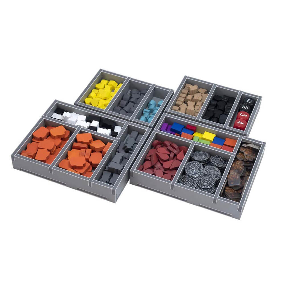• Insert compatible with Raiders of the North Sea®, including the Hall of Heroes® and Fields of Fame® expansions. The design provides both efficient storage and improved game play. Many of the trays can be utilised during the game, and they greatly aid set-up and clear-away times. The rules and boards act as a lid on top of the trays.