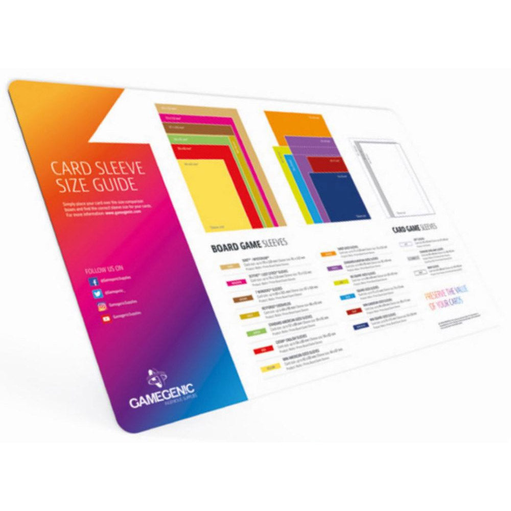 • Measure and organize your card sleeves with the Gamegenic Sleeve Size Counter Deskpad Mat.