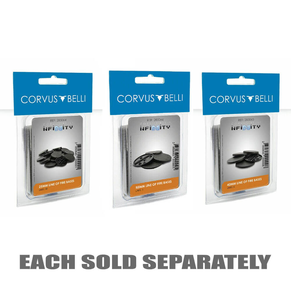 - Pack of 20 25mm bases. Designed exclusively for Infinity miniatures, with Line of Fire markings displayed on the base.