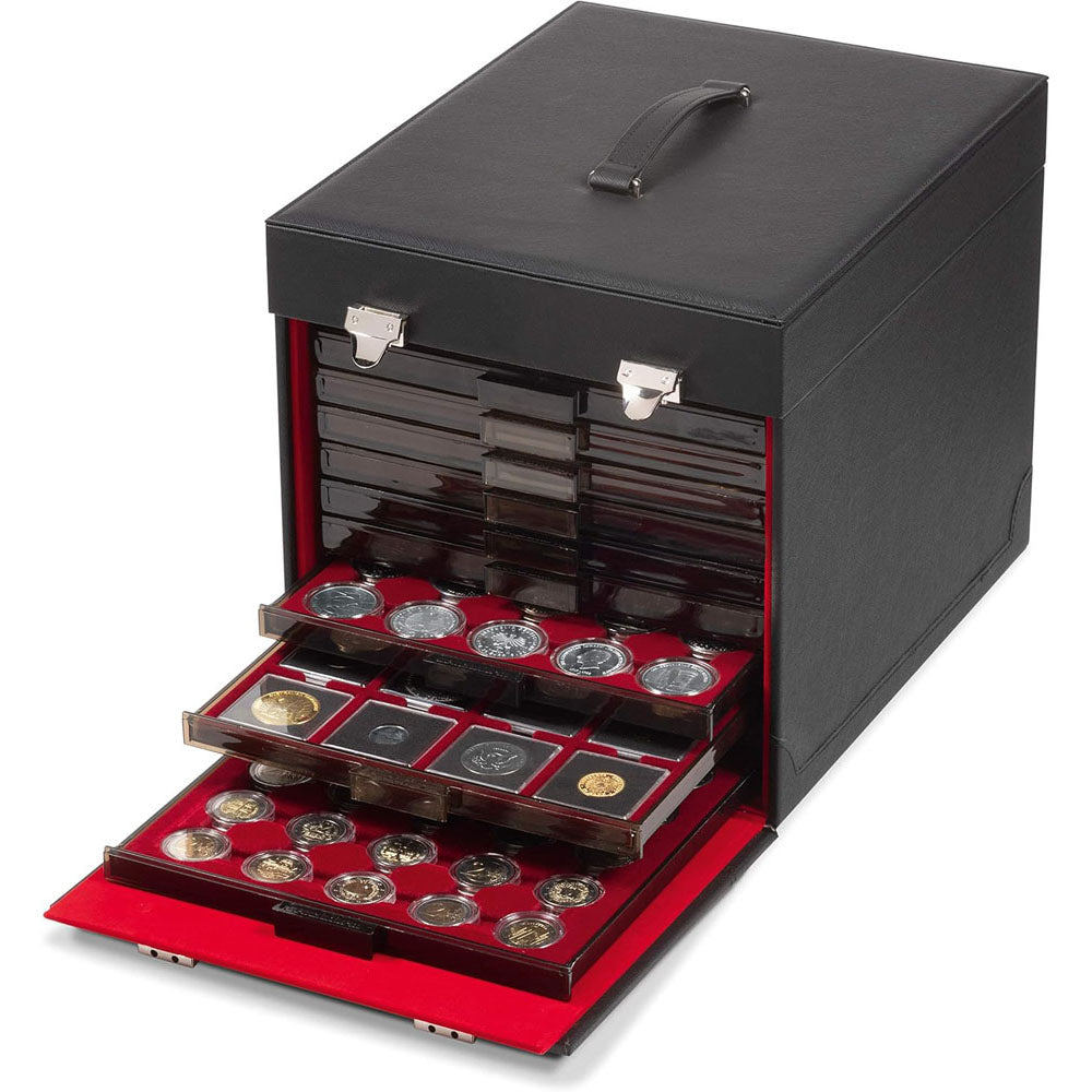 Transport your coins with ease and style using the Leuchtturm Faux Leather Coin Carry Cargo Case in black. Featuring a durable faux leather construction and multiple compartments, this cargo case offers a secure and convenient solution for traveling with your coin collection. Whether you're attending coin shows or visiting fellow collectors, this Cargo Case provides ample storage space and protection for your coins. Let this Leuchtturm cargo case be your trusted companion as you transport and showcase your coin collection, ensuring that each piece arrives safely and is displayed with pride.