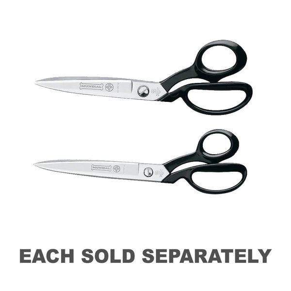 Mundial industrial shears provide the ultimate durability and performance. This assortment is hot drop forged and fully nickel plated with black enameled handles for durable long-term value. Many of these industrial scissors and shears feature Mundial's Stay-Set pivot assembly, which is uniquely engineered to allow the rider to be adjusted to fit one's own ergonomic needs. Once it's set, it stays set for comfortable cutting power under the most demanding industrial applications.