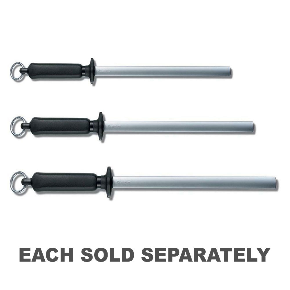 A solid stainless steel rod coated in fine diamond grain allows a long lasting sharp, smooth edge for your entire set of kitchen knives whenever they need re-honing.The Fibrox, textured grip will provide excellent control along with a large hand guard and wide handle. Hang on the wall with the attached hanging loop, or store in your knife block. The Victorinox are dedicated to ensuring high-level quality control of all their products with a lifetime guarantee.