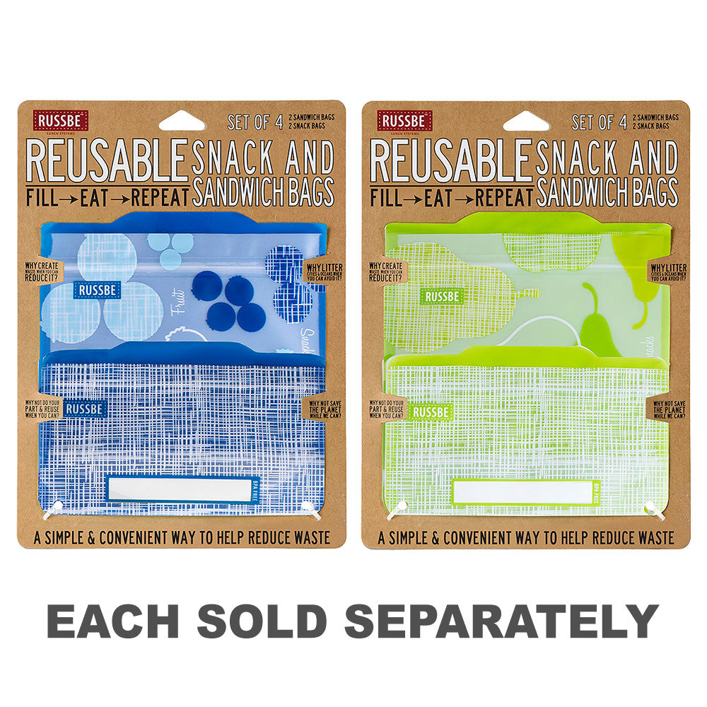 Durable and reusable, this set of 4 Snack and Sandwich Bags from Russbe are an eco-friendly and trendy way to keep food fresh. Featuring reinforced seams and a locking seal to keep food fresh, the gusseted standup design ensures a mess-free snack/meal experience. BPA, PVC, latex, and phthalates-free, you can be sure you're making a healthy choice for you and your on-the-go family - ideal for storing leftovers, marinating foods, or when packing lunch for work or school.