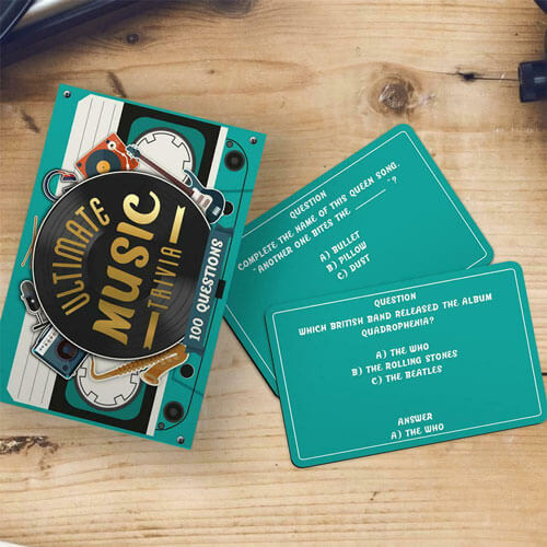 - Each card features multiple choice answers - unless you’re feeling particularly mean!