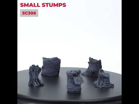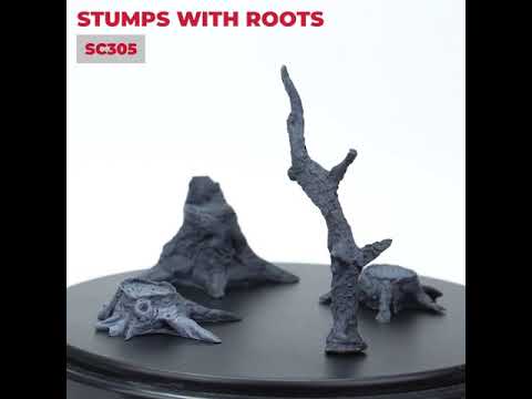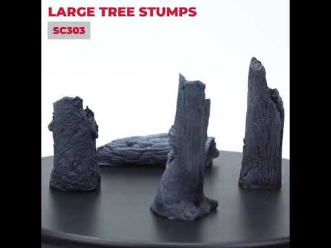 - Cuatro tocones secos de una variedad de árboles europeos, con textura de corteza detallada e interiores. Ideal para colocar en dioramas, eligiendo las tonalidades para representar ambientes húmedos o secos, incluso añadiendo mechones o musgo de referencias del Paisaje Vallejo.