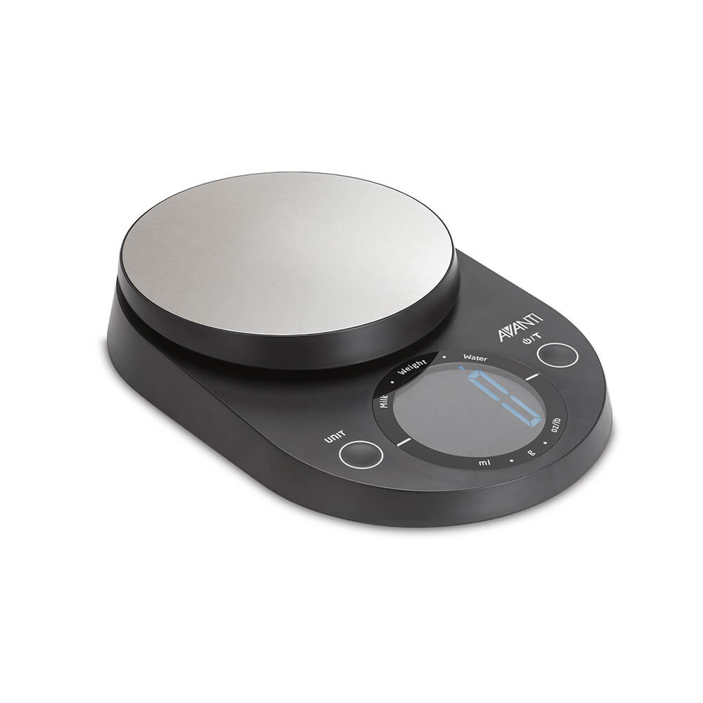 La báscula de cocina digital Avanti con pantalla grande negra está equipada con un sistema de sensor sensible para brindar lecturas de medición precisas en segundos. Tiene un práctico botón de unidad que le permite cambiar diferentes unidades de medida. Con una gran pantalla digital para una medición fácil y más precisa. Mide fácilmente varios ingredientes en un tazón usando la función de tara. Es un accesorio compacto y ligero que es fácil de guardar. Capacidad: 5kg.