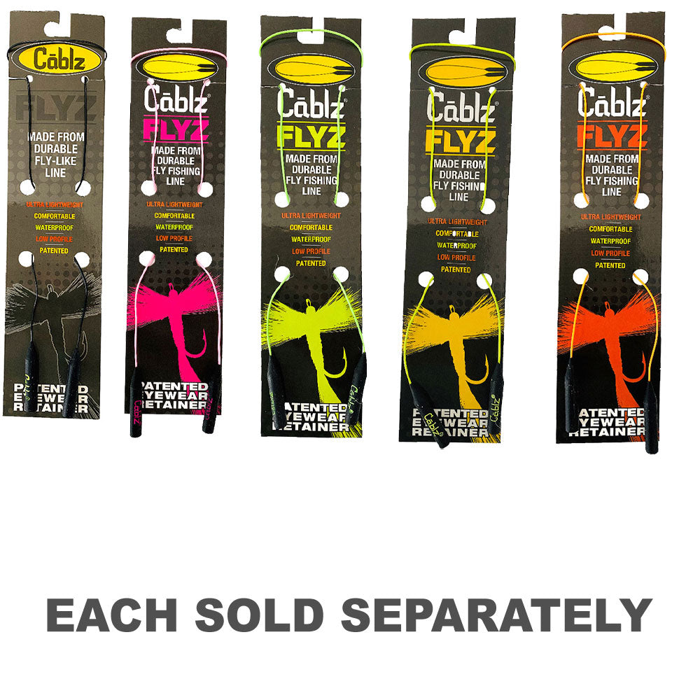 Los Cablz Flyz están hechos de un hilo de pescar duradero, ultraligero y similar a una mosca, con nuestros extremos universales que se adaptan a la mayoría de los marcos del mercado.