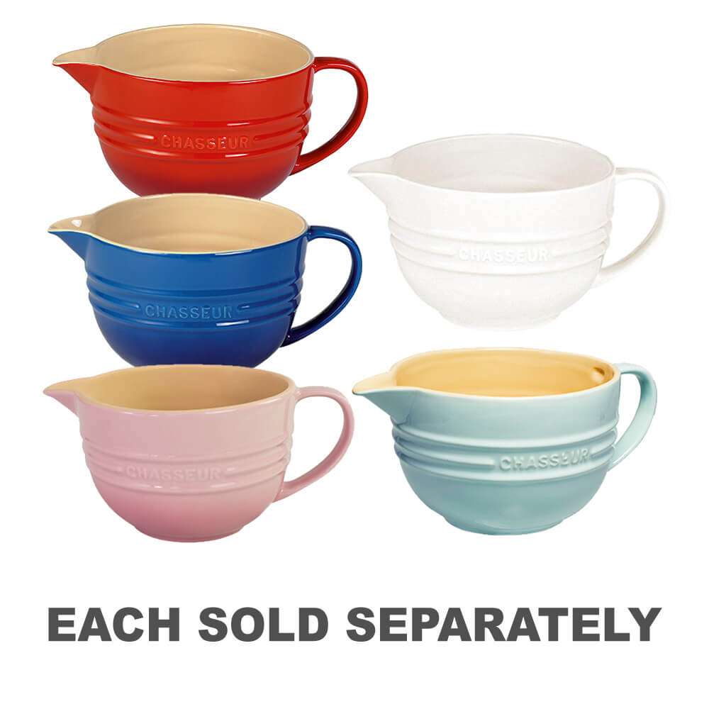 Adecuado para la mayoría de tus preparaciones para hornear o cocinar, el pico hace que sea muy fácil verter la mezcla sin ensuciar. ¡También es perfecto para verter la mezcla para panqueques en la sartén! Vienen en hermosos colores para complementar su colección de hierro fundido o como piezas independientes. Añaden un toque elegante a tu cocina o mesa de comedor.