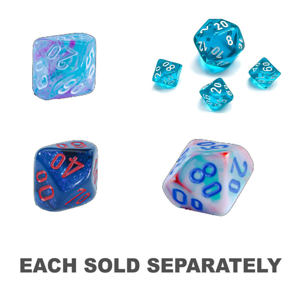 Este juego de 10 dados translúcidos de Chessex se ve, se siente y rueda bien y será una gran adición a cualquier juego o colección. El número superior se utiliza en una tirada. Los bordes permiten un fácil reconocimiento de la forma y los números son lo más grandes posible en cada cara.