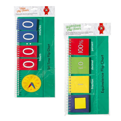• El gráfico es de doble cara, con una representación diferente de fracciones en un lado, y fracciones, decimales y porcentajes en el reverso.