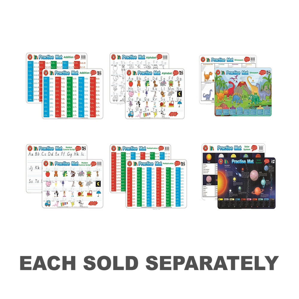 A los niños les encantará practicar sus habilidades numéricas con este atractivo y colorido tapete de práctica. Es importante destacar que este es el único producto del mercado adaptado al plan de estudios de Australia. Único para este producto; El tapete se puede usar con un lápiz de borrado en seco, lo que permite limpiarlo para usarlo una y otra vez. Alentados, los niños pronto dominarán las habilidades numéricas en el tapete de práctica mediante el juego repetido. Excelente calidad duradera. Tamaño: 42 cm x 28 cm cada uno. Apto para niños mayores de 3 años