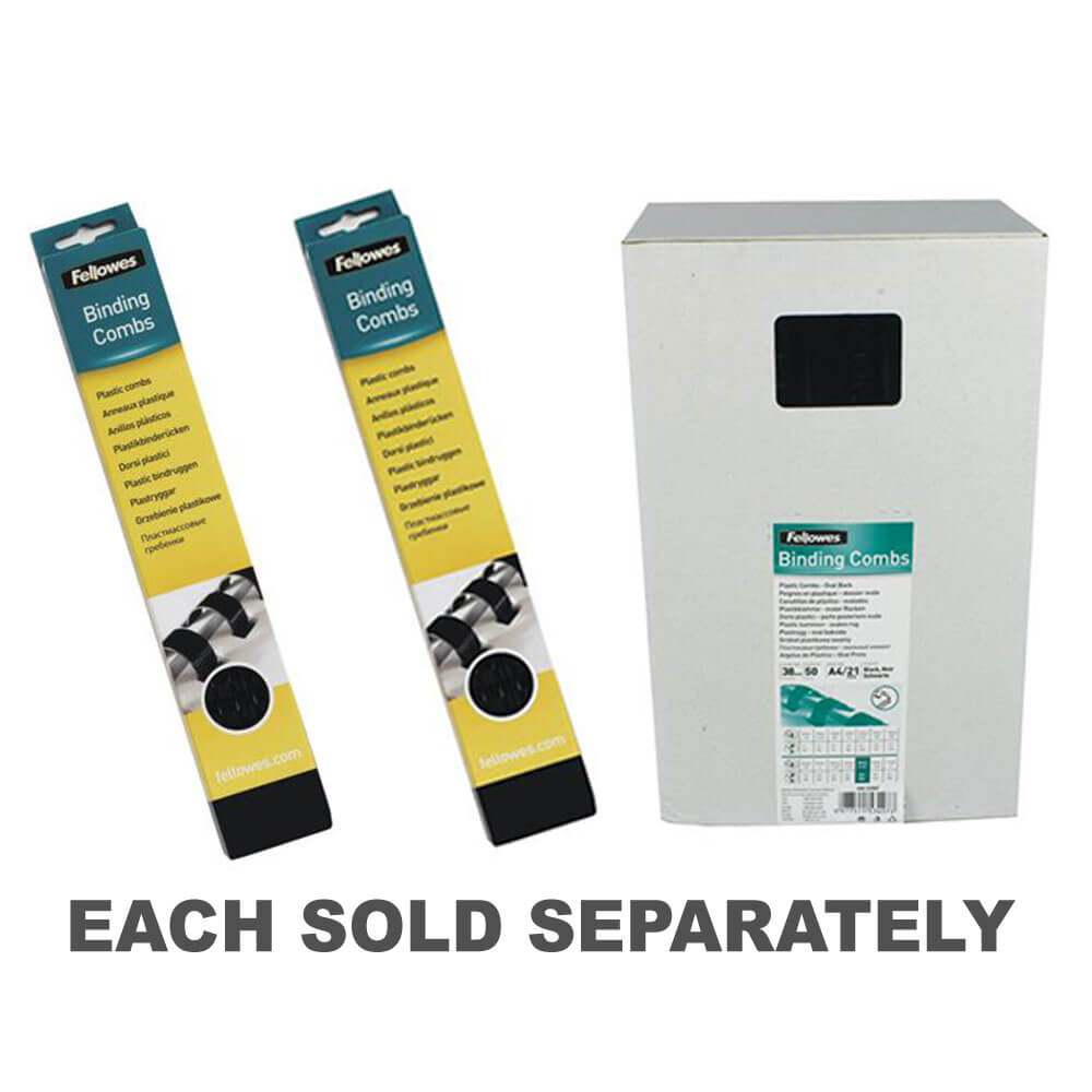 Fellowes Canutillos para encuadernación ovalados con 21 anillas, color negro, paquete de 50