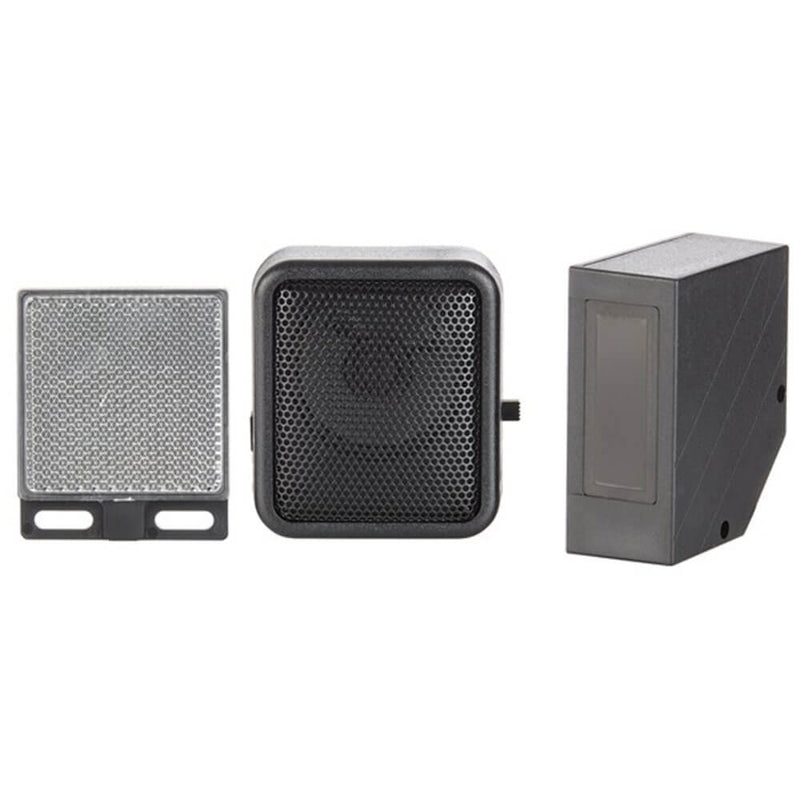 Un sistema de advertencia de entrada compacta está diseñado para su uso en tiendas, restaurantes, médicos y cirugías de dentistas, etc. para alertarlo sobre la entrada de clientes y visitantes. El sistema consiste en una unidad de envío/recepción que transmite un haz IR a través de la puerta sobre un reflector prismático montado en el lado opuesto. El haz se refleja en el receptor para completar el circuito. Cuando una persona camina por la viga, el circuito se interrumpe y esto hace que la alarma suene una advertencia audible. El timbre de advertencia se puede montar en cualquier ubicación adecuada hasta 10 m de distancia. Plugpack de red y hardware de montaje incluidos.