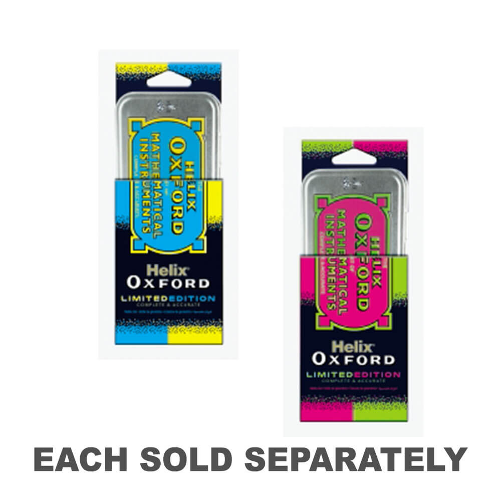 Da rienda suelta al matemático que llevas dentro con este juego de matemáticas Helix Oxford. En su interior encontrarás un transportador, 2 escuadras, una regla, una goma de borrar, un sacapuntas y un lápiz para empezar a trabajar. Mantén todo en el mismo lugar con la lata de transporte incluida en un emocionante dúo de colores amarillo y azul.