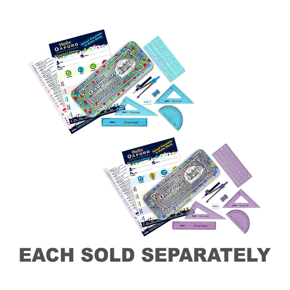 El juego de matemáticas Helix Oxford azul de 9 piezas es una forma cómoda de abastecerse de elementos esenciales de matemáticas para la escuela. Viene con una variedad de herramientas matemáticas para completar tu trabajo de clase, además de algunos artículos de papelería esenciales y una lata duradera para guardarlo todo junto.