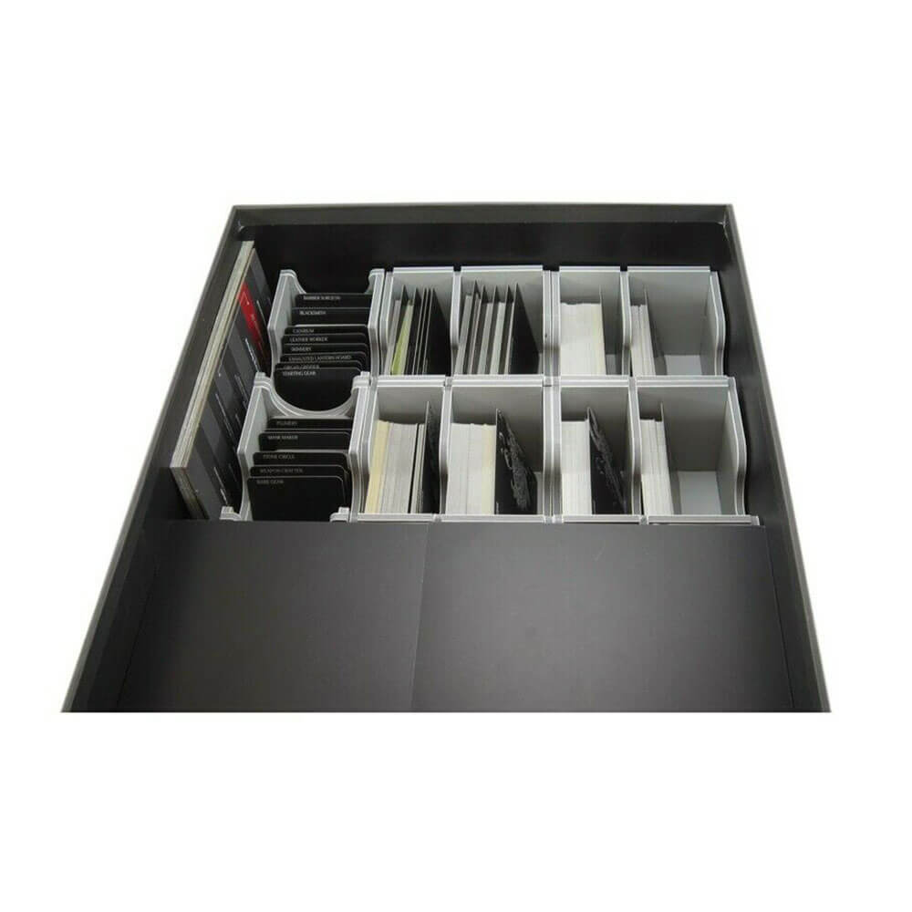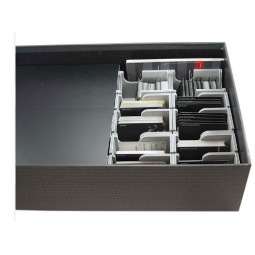 - Este inserto de la campaña 2 está diseñado para ser compatible con las expansiones de Kingdom Death Monster®, proporcionando espacio para 560 tarjetas de tamaño estándar y 300 tarjetas de engranajes más.