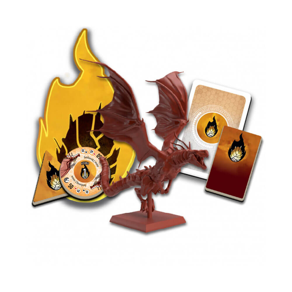 1 hoja de facción 6 miniaturas únicas 3D Fireborn 1 ficha de iniciativa 4 cartas de batalla 12 fichas de crecimiento 1 carta de misión 1 loseta de zona de inicio 3D (exclusiva de KS) 20 marcadores de facción