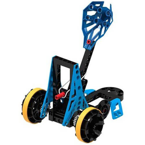 Construye una catapulta y lanza objetos por el aire. Instale un dispositivo de lanzamiento que impulse una motocicleta por el suelo con solo presionar una palanca. Construye un modelo de libélula en equilibrio y una veleta para experimentar con fuerzas.