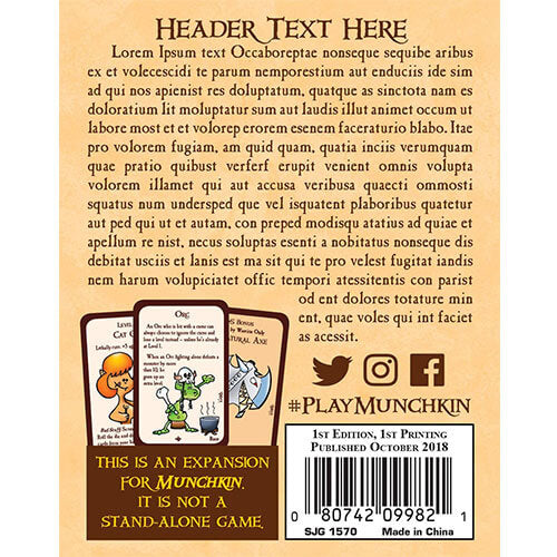 - Esta es una expansión para Munchkin; No es un juego independiente.