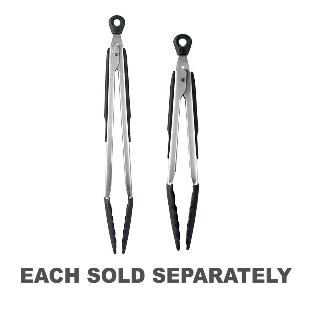 Las pinzas OXO classic ahora están disponibles con cabezales de silicona, lo que las hace adecuadas incluso para las tareas de cocina más calientes. Estas pinzas cuentan con una construcción robusta de acero inoxidable, agarres suaves antideslizantes con apoyo para el pulgar y cabezales de silicona translúcidos que resaltan la resistencia del acero inoxidable que se encuentra debajo. Los cabezales de silicona son seguros para utensilios de cocina antiadherentes y resistentes al calor hasta 600 grados. Simplemente cierre las pinzas para guardarlas cómodamente. El acabado de acero cepillado es la característica del acero inoxidable.