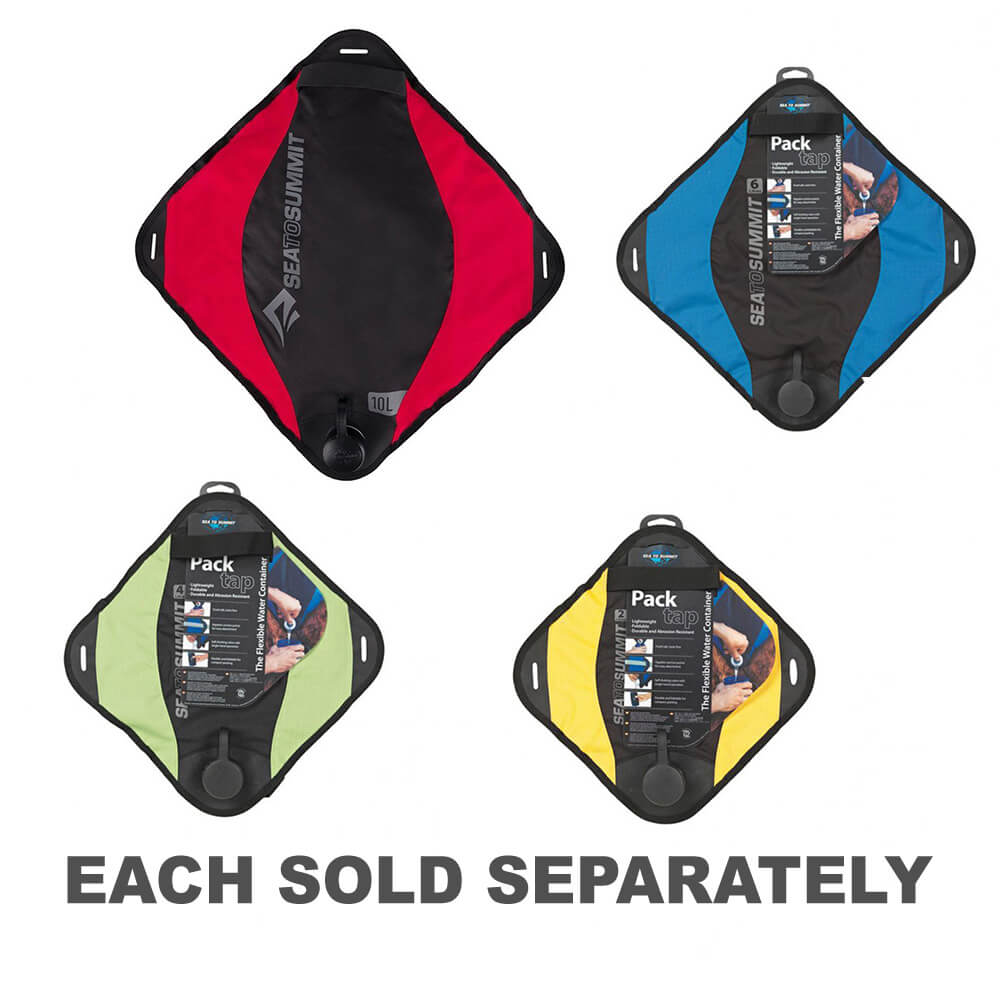 ¡Cuelgue esto de un árbol en el campamento y tendrá agua literalmente del grifo! Múltiples puntos de sujeción Hypalon le permiten colgar o asegurar el Pack Tap en muchos lugares. Se pueden enrollar y apretar en espacios reducidos: los tejidos utilizados son muy resistentes a la abrasión y las cámaras dobles resistirán una presión importante. Las vejigas en sí son Mylar y no tienen ningún sabor.