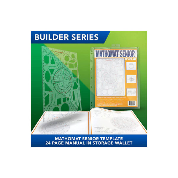Este paquete para estudiantes de Mathomat V2 viene con una plantilla de Mathomat V2, una cartera para guardarlo y un póster. La plantilla Mathomat combina una regla, un transportador, un compás, plantillas para formas geométricas, guías gráficas y más en una sola herramienta.