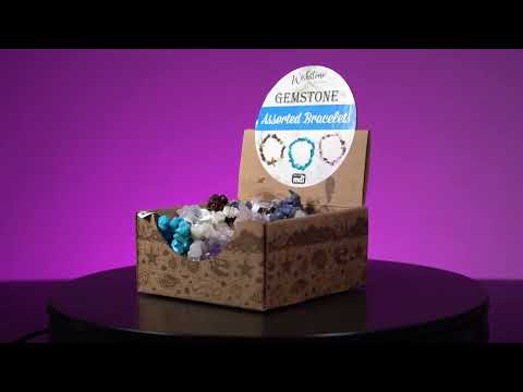 - Se envía aleatoriamente entre 8 pulseras de piedras diferentes: cuarzo rosa, howlita azul, amatista, fluorita, sodalita, ojo de tigre, cuarzo roca, almeja blanca