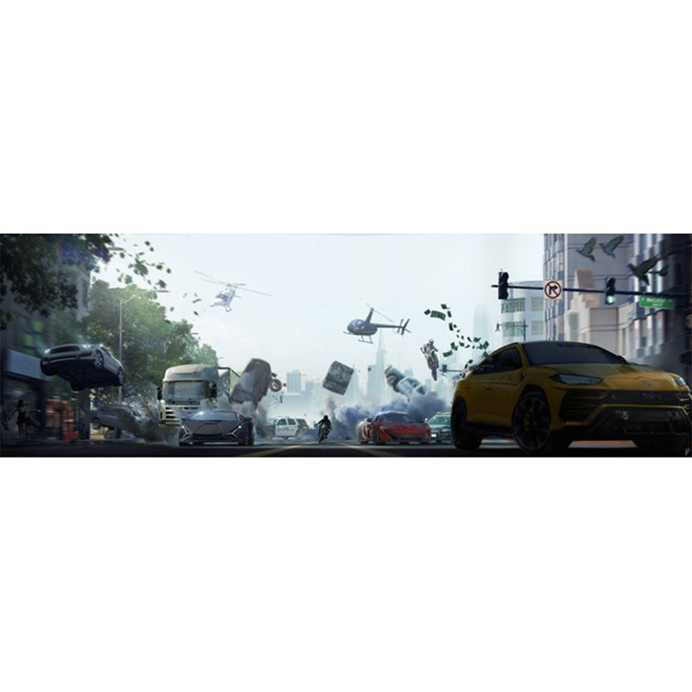 Tenemos una hermosa pantalla GM de 4 paneles ilustrada por Lorenzo di Sanctis de Need for Speed.
