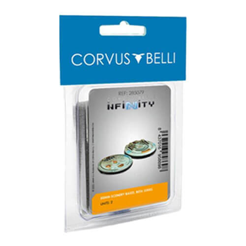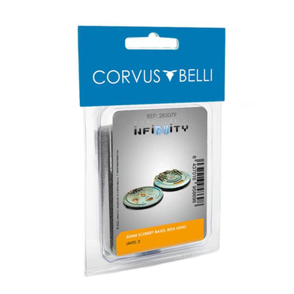 Blister de dos bases de termoplástico inyectado de 55 mm. Todas estas bases escénicas tienen marcas de Línea de Fuego para mejorar la jugabilidad de tus modelos.