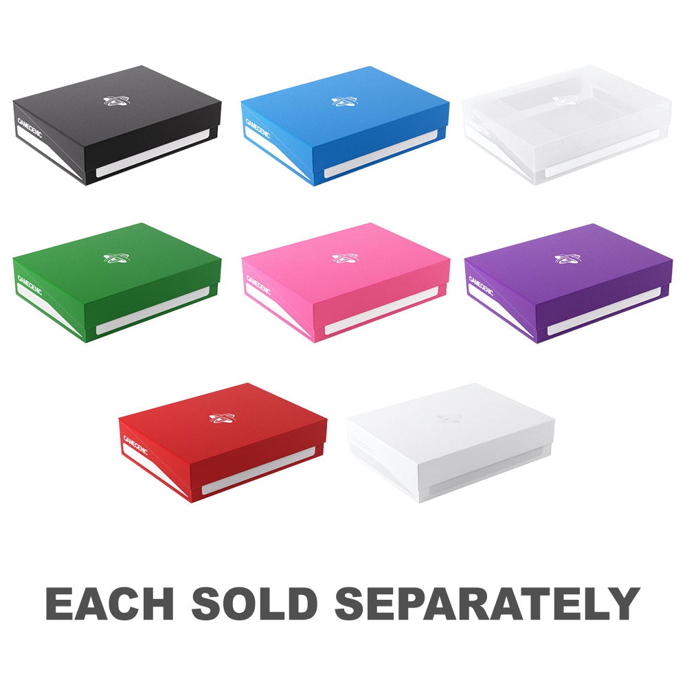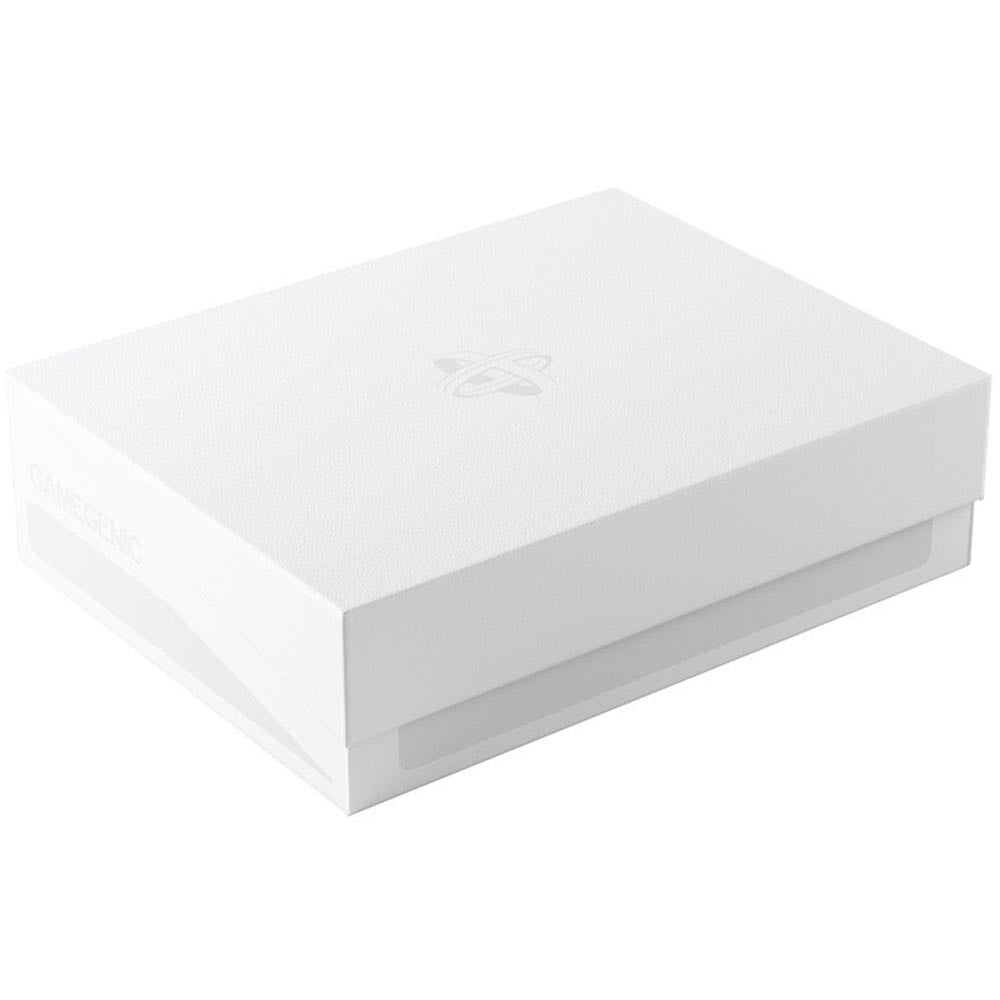 ¡La forma fácil y asequible de proteger y transportar sus tokens! ¡Guarde un espacio precioso en su caja de juego o en la mesa de juego con nuestro token soporte! Esta caja de fichas almacena de forma segura una gran variedad de fichas, dados e incluso 40 tarjetas de doble manga, 50 de manga de una sola o 80*. El innovador mecanismo seguro de bloqueo de clics asegura que ningún elemento se pierda. Realice fácilmente lo que almacena en sus tokens con las convenientes tiras de escritura. El token soporte es compatible con otros productos GameGenic, como Holder Cave, Dungeon 1100+ y Dungeon S 550+. Es perfecto para una gran variedad de juegos de tablas y cartas.