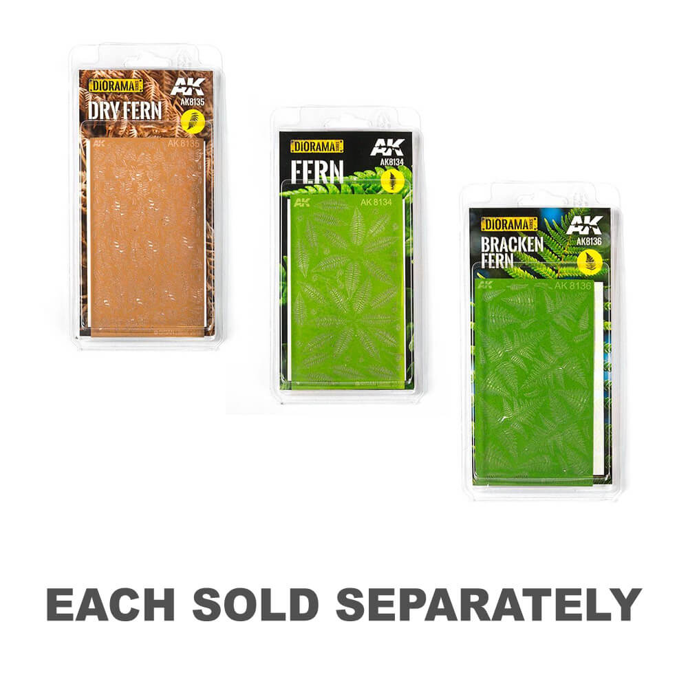 Plantas realistas cortadas con láser de CO2 de alta calidad. Estas son las plantas más detalladas disponibles en el mercado. Su uso aporta un toque distintivo y ultrarrealista a tus dioramas, escenarios y vehículos. Se puede fijar fácilmente en su lugar con pequeñas cantidades de pegamento blanco, pegamento blanco diluido o usando nuestro fijador de grava y arena AK118 original.