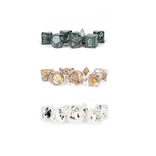 • Les dés en résine MDG ont des inclusions uniques qui ajoutent de la poussée à n'importe quelle table de jeu.