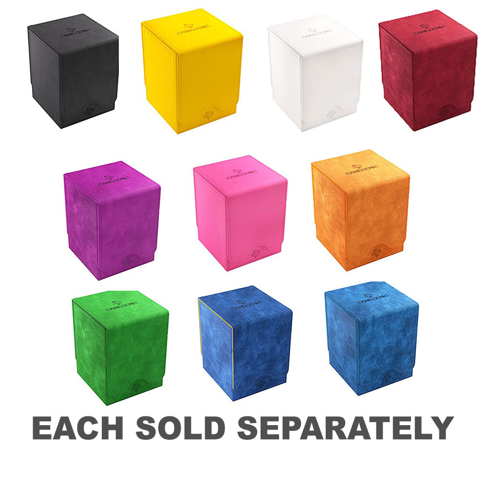 - Tenez encore plus de cartes: le Squire 100+ XL est une boîte de rangement de cartes extra-large exclusive qui contient 100 cartes à manches doubles régulières et a un espace supplémentaire pour des jetons supplémentaires, ou il s'adapte parfaitement à un jeu de commandant dans des manches intérieures plus épaisses.