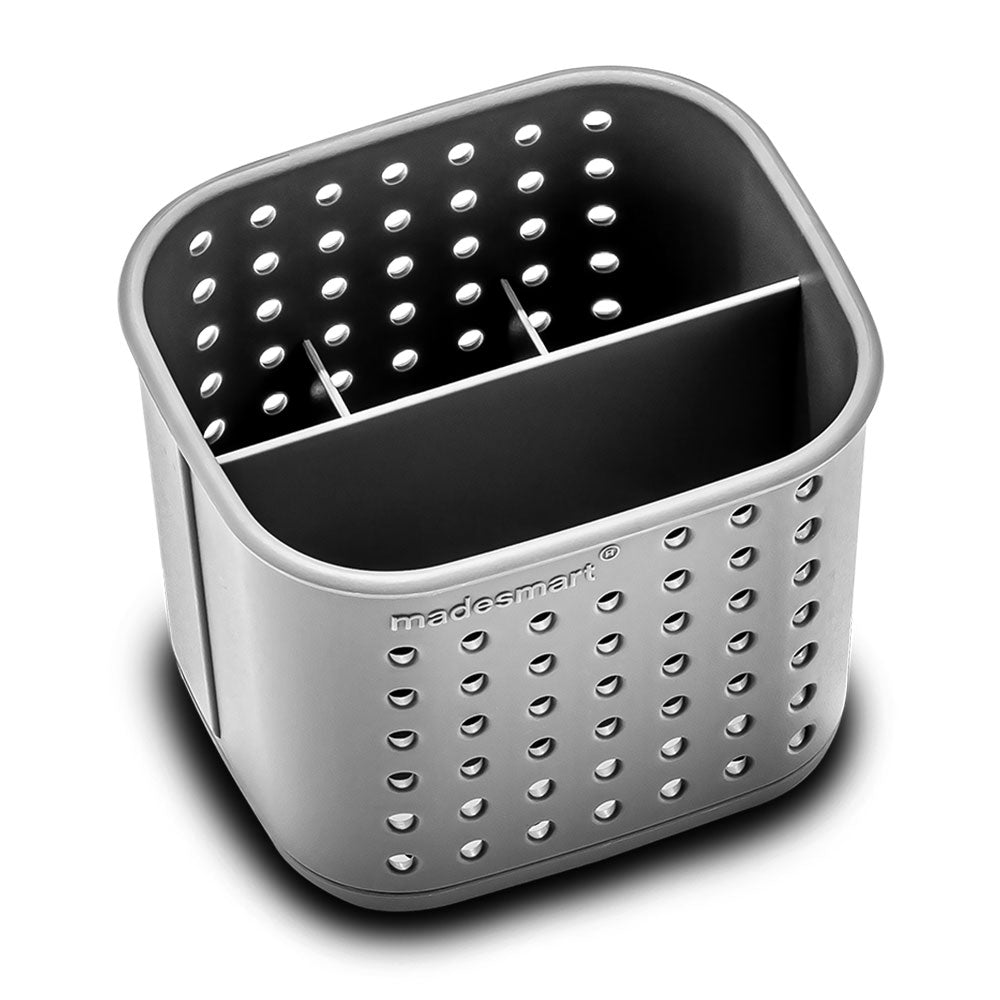 La station d'évier de poche de Madesmart garde les outils de lavage des plats bien rangés et contenus. Les compartiments intérieurs divisés fournissent un espace pour les éponges, les épurateurs et les baguettes, tandis que les trous de ventilation favorisent un séchage plus rapide pour l'amélioration de l'assainissement. La base de drainage détachable permet un nettoyage facile et les matériaux à poignée douce protègent les comptoirs tout en gardant la station en place.
