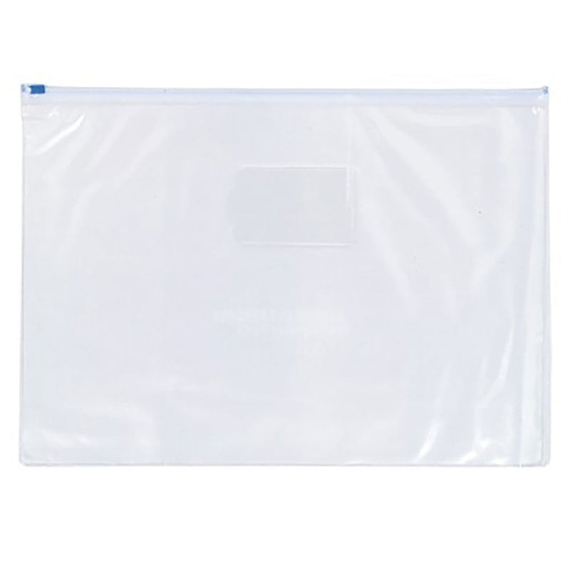 Un étui en plastique transparent et durable transporte tous vos documents, papiers et autres articles lâches. Zip horizontal coloré pratique qui sécurise tout votre contenu et garantit que rien ne tombe. Dispose d'un support d'étiquette sur la couverture avant pour identifier facilement le contenu.