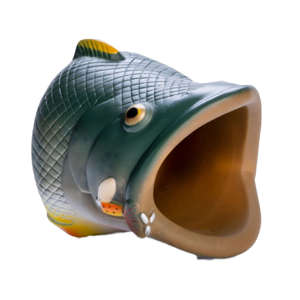 Les bars à grande bouche à la nageoire peuvent refroidir à partir de vinyle isolant des caractéristiques de texture à l'échelle réaliste et de coloration verte marbrée. La nouveauté peut être plus cool conçue comme si la basse avale votre boisson!