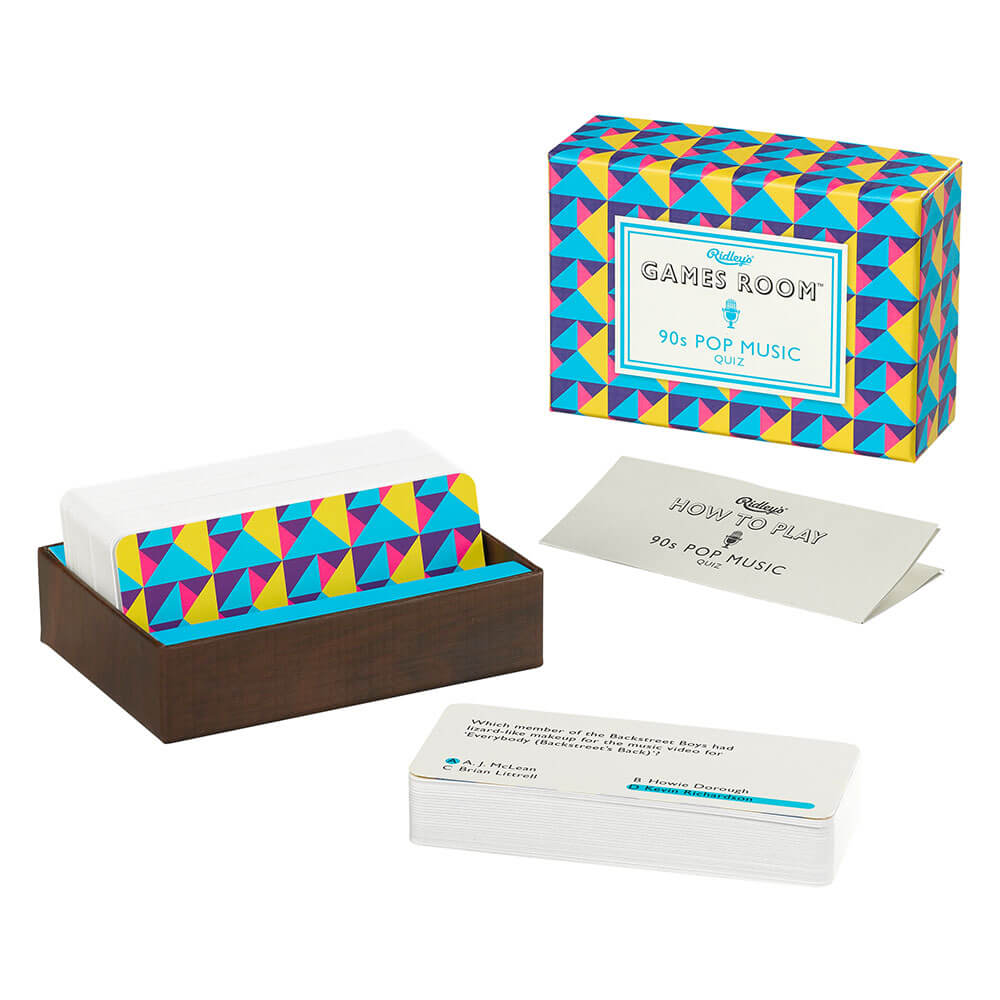 Avec une multitude de questions couvrant la décennie, vous vous amuserez en vous rappelant des artistes comme les Spice Girls et Nirvana et des succès tels que MMMBOP! Comprend 140 cartes de questions à choix multiples présentées dans une boîte géométrique inspirée des années 90.