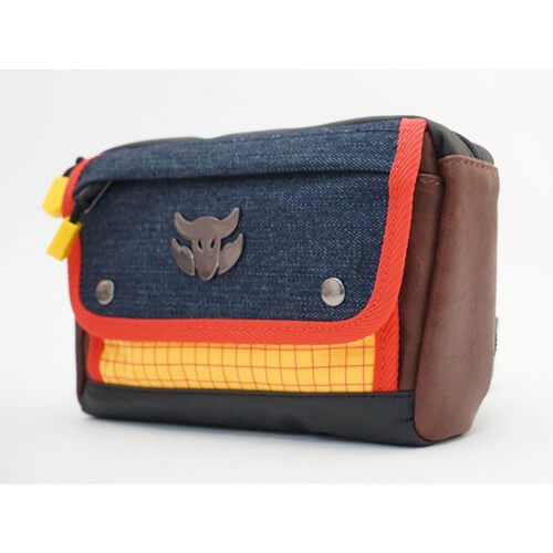 • avec des éléments en similicuir et en denim avec des bordures en nylon et une jolie breloque en métal sur le devant /li>