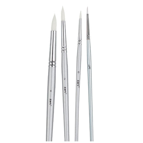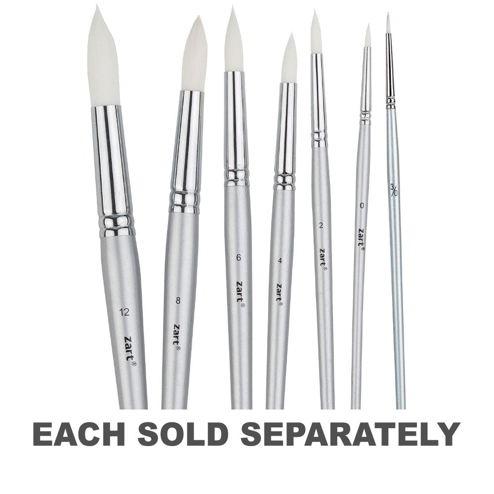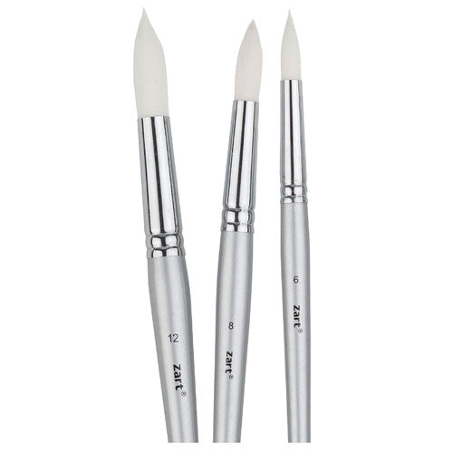 Student quality taklon round brushes with short tapered handles and a metal ferrule. They retain their shape, are durable and easy to clean. Best suited for acrylic, watercolour, gouache and craft paint.