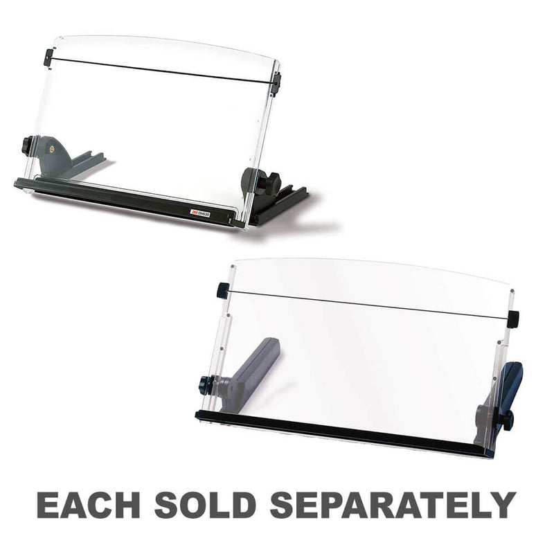 Il supporto per documenti in linea regolabile da 3M con guida elastica della linea mette i documenti in linea con il monitor e la tastiera che riducono il movimento di occhi, collo e spalle al minimo la tensione e l'aumento del comfort. La base ponderata stabile consente alla sporgenza di immergersi sotto il bordo della scrivania aumentando lo spazio della scrivania. Elastic Line Guide segna che posiziona, mantiene le pagine aperte e si estende per ospitare anche i libri più spessi. La capacità di backplate da 18 "e 300 fogli supporta libri, cataloghi e quasi qualsiasi documento di dimensioni. Angolo e altezza si adattano per soddisfare le tue esigenze. Black / Clear. 40% di contenuto riciclato pre-consumatore.