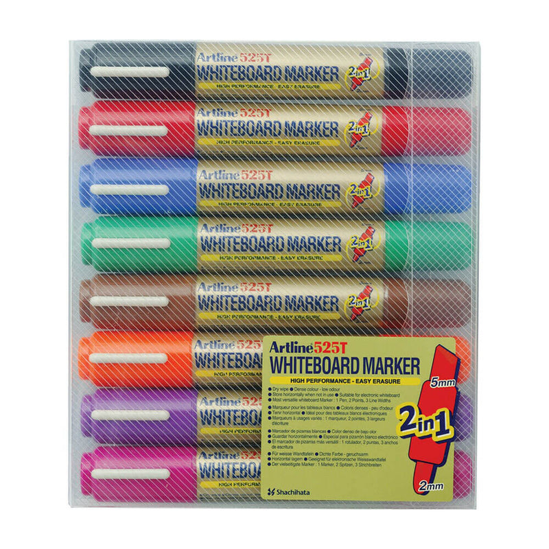 Il marker di lavagna a doppio pennino ARTLINE 525T consente di contrassegnare in linee spesse o sottili senza cambiare le penne. Ogni marcatore contiene a basso odore e inchiostro a base di alcol che offre colori vivaci e audaci che sono facili da rimuovere dalle lavagne e da altre schede di cancellazione a secco.