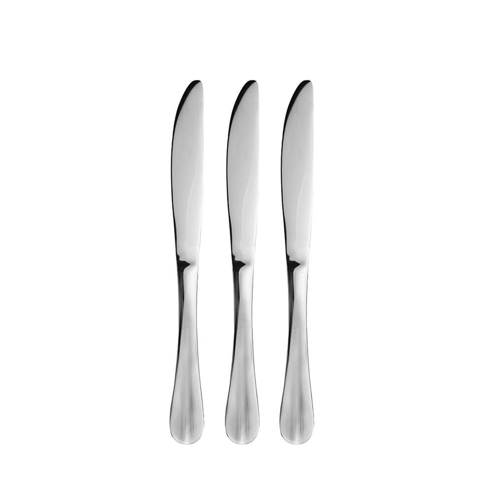 Set di 3 coltelli da tavola Avanti Heritage, design classico ed elegante rifinito in acciaio inossidabile resistente. La collezione di posate AVANTI Heritage con il suo motivo semplice e classico è progettata per integrare qualsiasi impostazione di tabella. Perfetta e resistente per l'uso quotidiano, questa posate è realizzata in acciaio inossidabile di qualità e presenta maniglie ben bilanciate con una linea verticale elegante per un look senza tempo elegante.