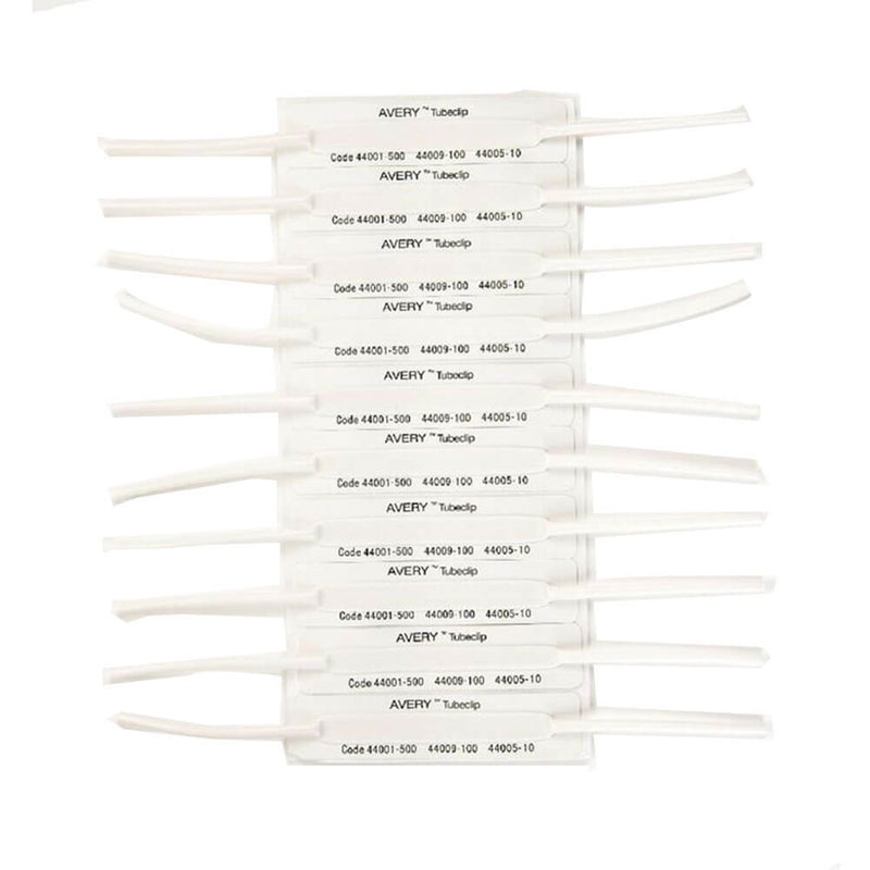 Questi dispositivi di fissaggio di Avery Tubeclip, se usati in combinazione con pezzi di Avery Tubeclip U e barre del compressore, uniscono i documenti senza la necessità di colle o nastri disordinati. Hanno un supporto autoadesivo che li rende facili da collegare e applicare.