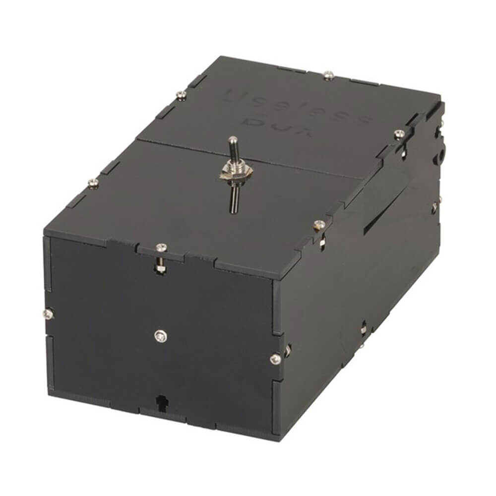 Una scatola nera mistica con un singolo interruttore a levetta. Ogni volta che si lancia l'interruttore, un dito si alza dalla scatola e si spenga. Nessuno su questo pianeta ha ancora capito un uso per questo, quindi il nome "Box inutile". C'è una cosa, tuttavia, che abbiamo notato, questa scatola magica lascia chiunque venga in contatto con un sorriso ipnotizzato sul viso.