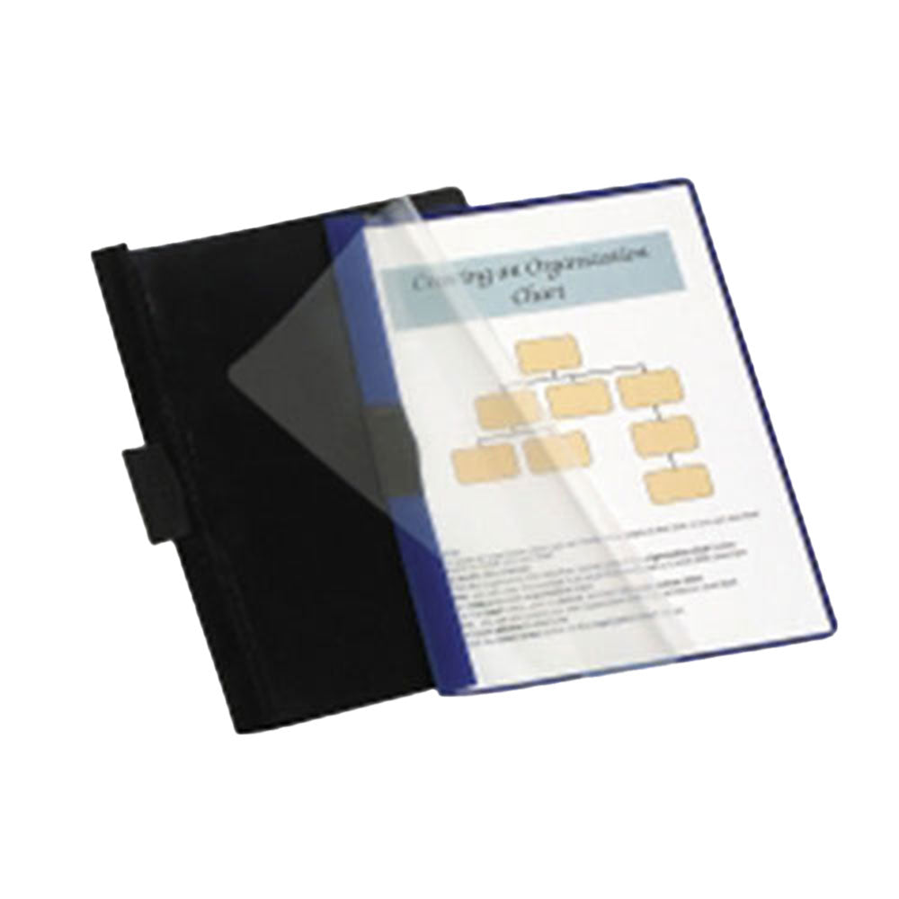 Cancella il coperchio anteriore con un sistema di clip sulla colonna vertebrale per fissare la carta non puntata. Clear Cover ti consente di personalizzare la cartella. Non è richiesto un foro. Basta scorrere la clip lontano dalla colonna vertebrale, inserire le pagine in posizione, quindi spingere la clip sulla colonna vertebrale