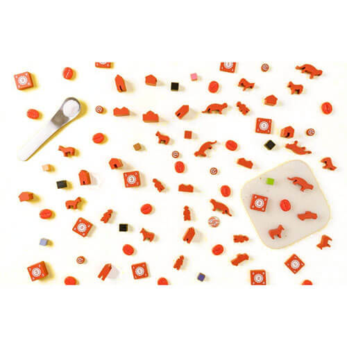 - Include oltre 350 pezzi di legno, 55 monete in metallo e 90 chicchi di caffè in resina.