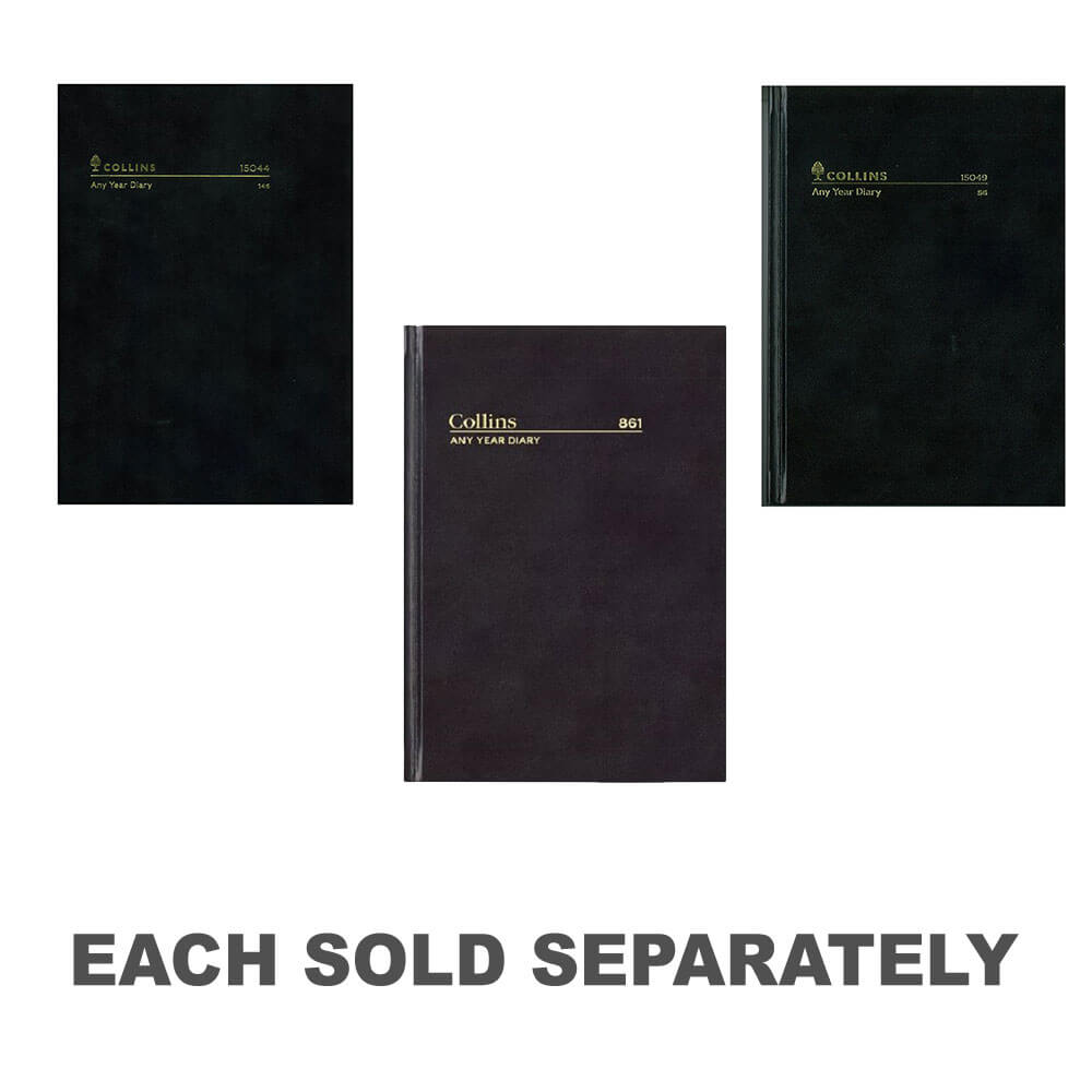 Una gamma di diari di qualsiasi anno è disponibile anche in copertine basate su carta nera in dimensioni e layout assortiti. Diani non datati, copertine nere, con qualsiasi anno di calendari. A5 1 giorno in una pagina